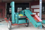 ■牽引拖車式帶輔助喂料、二次獨(dú)立清選和裝袋的免剝皮玉米脫粒機(jī)